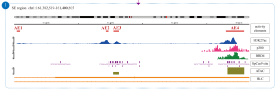 SEA Browser支持多轨道基因组数据叠加浏览,包括:DNA甲基化、Hi-C三维互作、染色质可及性、调控元件、SpCas9靶点等信息,用户可对任一SE进行GO/KEGG富集分析、转录因子结合富集分析、特异性评分计算等。