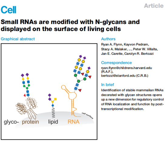 那么,糖RNA存在于细胞表面的具体机制是什么?Ryan Flynn团队今年4月发表的一篇CELL文章展示了一些线索: