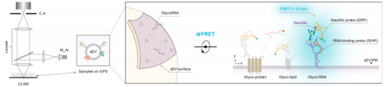 该研究开发了一种名为双识别Förster共振能量转移(drFRET)的新型成像技术,用于在原位、高灵敏度、高特异性地检测小细胞外囊泡(sEV)表面的glycoRNA,并成功将其应用于多种癌症的精确诊断。