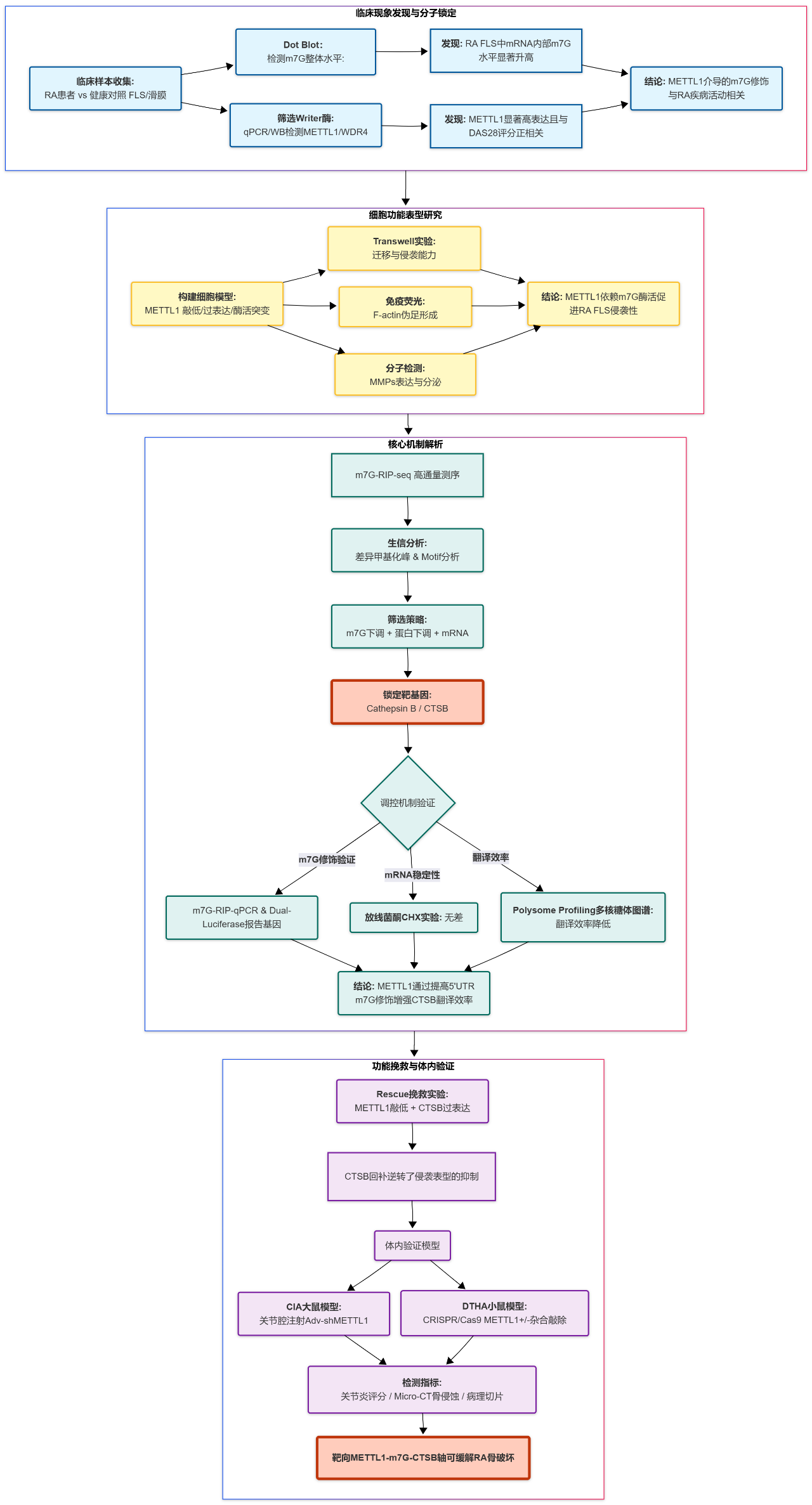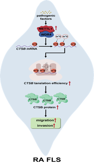 m7G项目文章 | IF 20.6 中大附一团队揭示METTL1介导m7G修饰通过CTSB促进类风湿关节炎滑膜侵袭的分子机制
