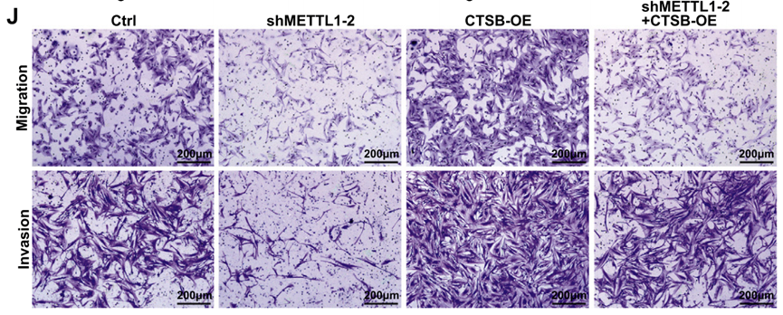 4. CTSB介导METTL1调控的RA FLS侵袭性