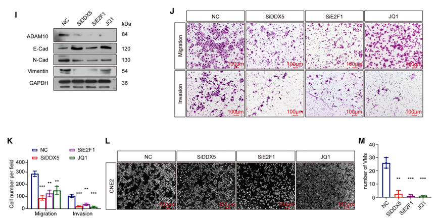 DDX5或E2F1敲低以及BET抑制剂JQ1处理均导致ADAM10表达下降,并抑制EMT、迁移、侵袭和VM形成。这一"超级增强子-转录因子-效应基因"三级调控轴的发现,不仅阐明了ADAM10上调的表观遗传基础,也为理解肿瘤细胞如何通过重编程染色质结构获得恶性表型提供了范例。