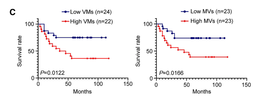 生存分析证实高VMD或高MVD的患者表现出更差的总体生存率。